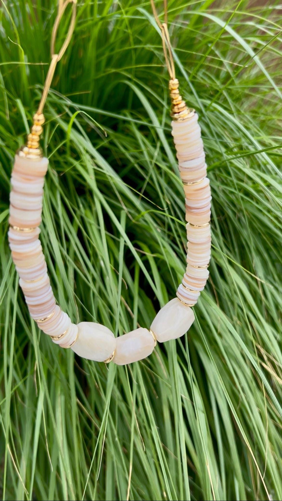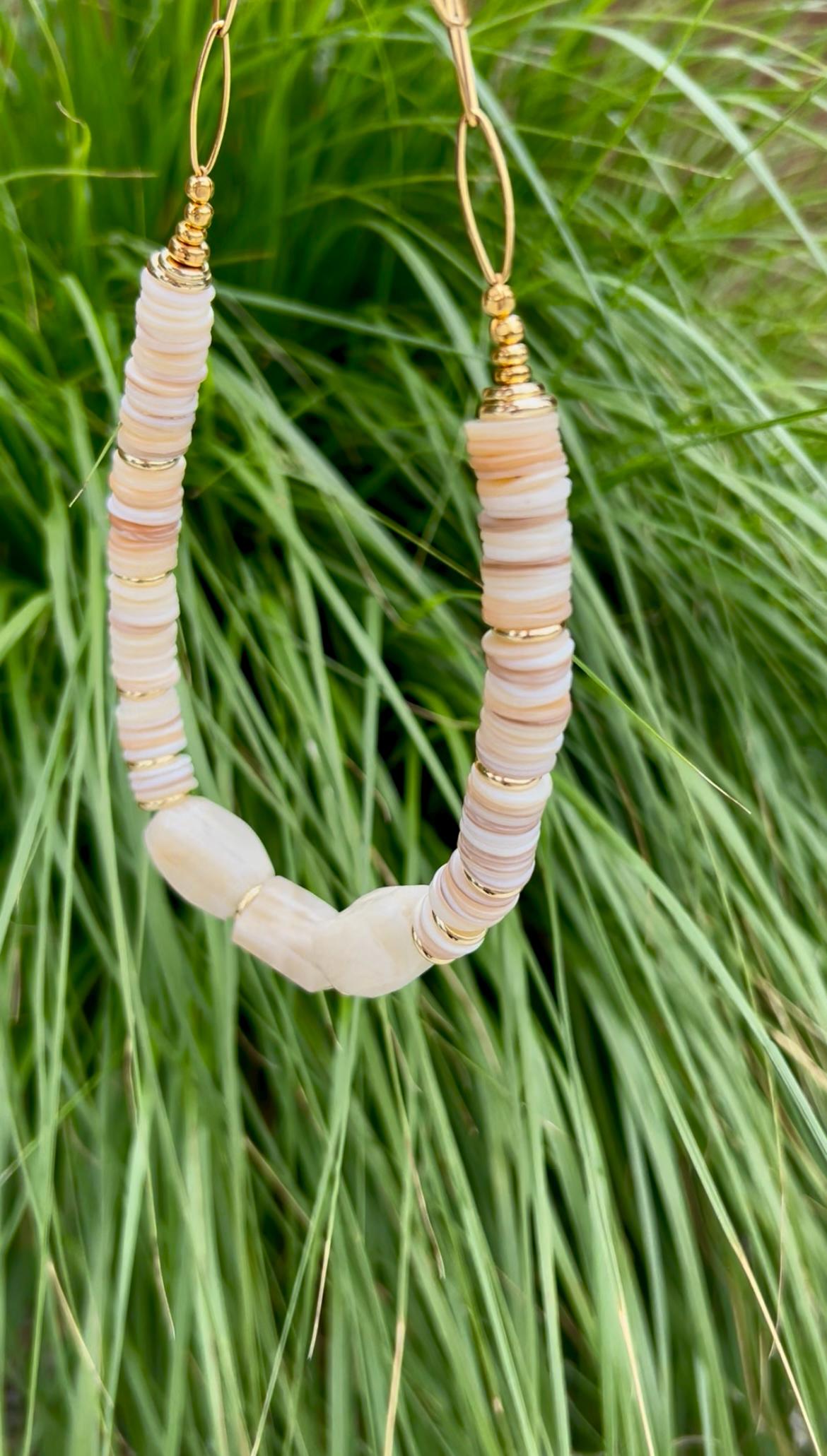 All jewelry is handmade of natural materials, by me, by the beach in California or by the mountains in Colorado or wherever I happen to be traveling. Packaging is compostable or recycled and/or recyclable. Items are shipped in an organic cotton jewelry bag, with a care card, in a gift box with raffia ribbon and wood beads, ready for gifting to yourself or another.